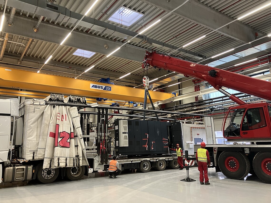 Anlieferung der Regalbediengeräte für das Hochregallager